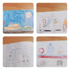 Dzieci ochoczo ćwiczyły na fantomie, uczyły się bandażować rany, ale największą frajdę sprawiło im wnętrze karetki, ponieważ mogły wejść do środka samochodu i zobaczyć jego wyposażenie, a także zasiąść za kierownicą! Mali Ratownicy wręczyły piękną laurkę serdecznie dziękując Panom Ratownikom za ciekawe i pouczające spotkanie, dzięki któremu na pewno wiele zapamiętały i w razie sytuacji zagrożenia życia lub zdrowia będą umiały właściwie się zachować.
