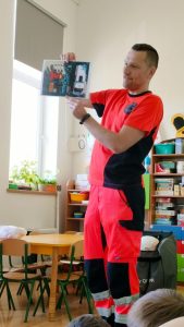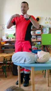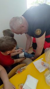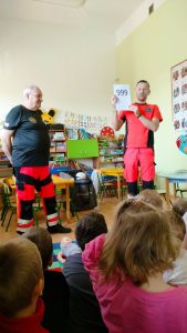 Celem zajęć było przygotowanie przedszkolaków do wykonywania prostych czynności udzielania pierwszej pomocy, jak informować o zdarzeniu i na jakie telefony alarmowe dzwonić w razie potrzeby.