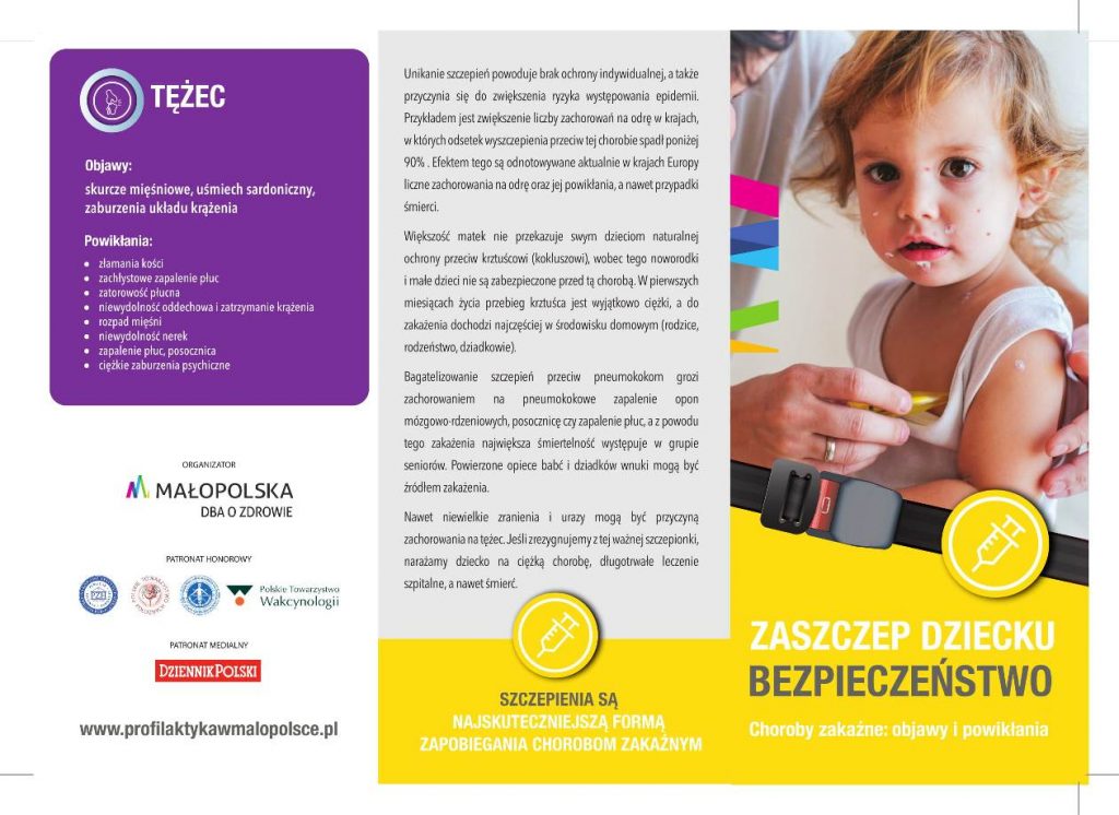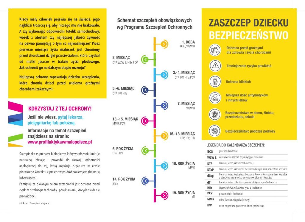 Przypominamy, że od 1 września br. na terenie województwa małopolskiego trwa kampania społeczna mająca upowszechnić wiedzę na temat szczepień ochronnych dzieci. Zapraszamy do zapoznania się z bardziej szczegółowymi informacji na stronie: https://www.profilaktykawmalopolsce.pl/zaszczep-bezpieczenstwo